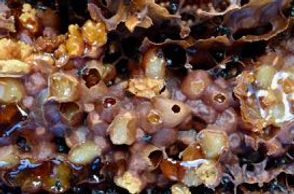 candied honey and pollen pots from Tetragonula carbonaria located in a macadamia plantation in Bundaberg, Queensland, Australia
