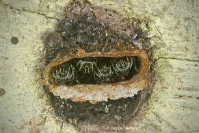 4 Paratrigona peltata guards holding the entrance hole of theire colony