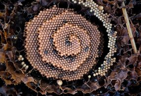 Tetragonula carbonaria from Queensland can make different comb shapes, here one with triple spiral design