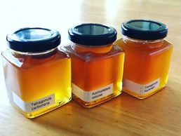 Australian native bees produces a small amount of hone, about 1litre per year. The honey are stored in pots of wax or a mix of wax and resign